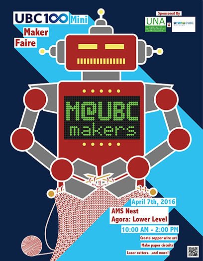 For UBC's centennial celebration, I took on the task of organizing UBC's first Mini Maker Faire! There were approximately 200 attendees of varying age ranges working at nine different stations. I was responsible for overall organization, fundraising, purchasing & budget, communication, design and marketing.